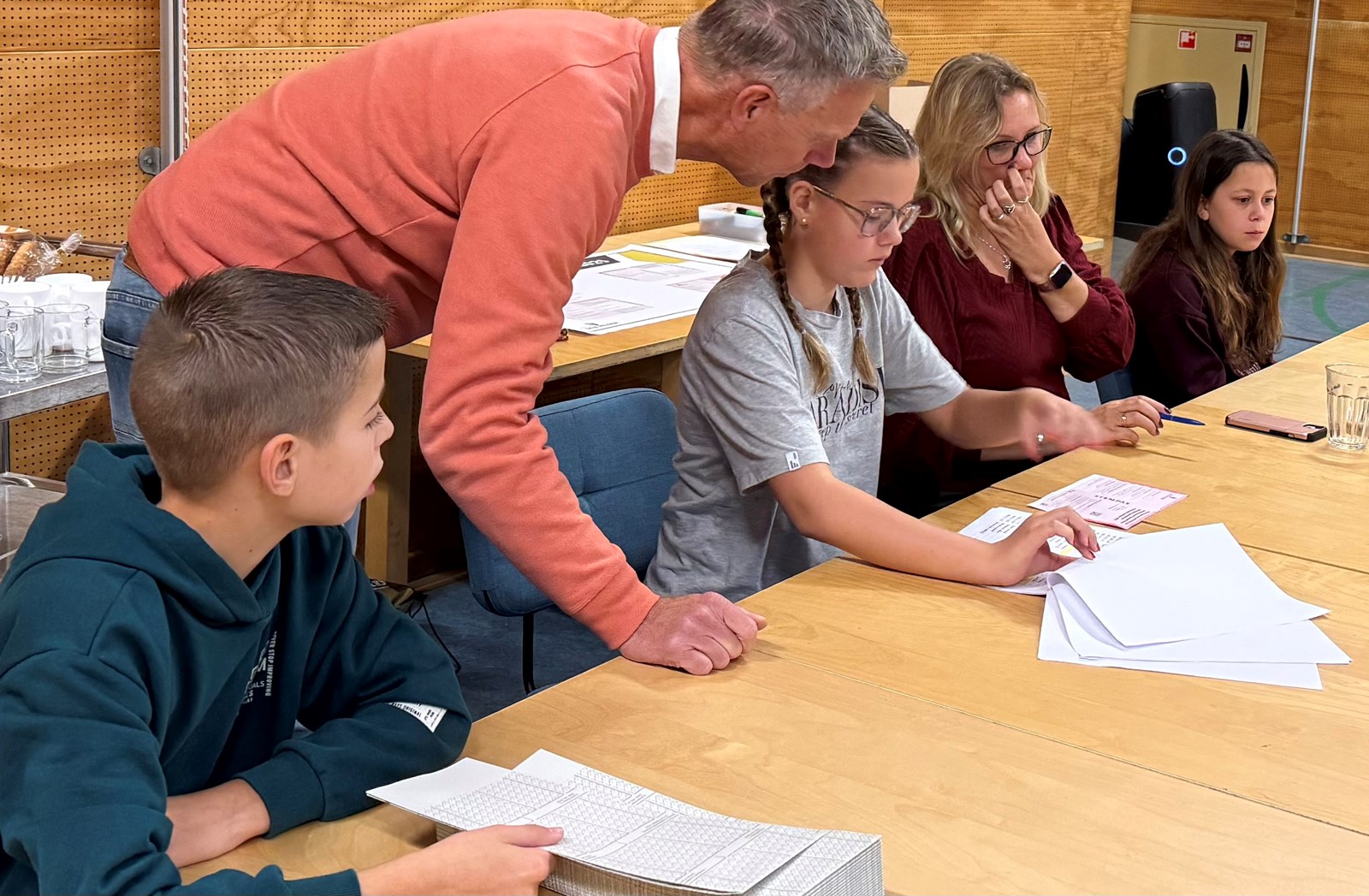 De jonge assistenten namen hun taak uiterst serieus. Zo controleerden ze nauwkeurig of zelfs hun eigen juf of meester wel stemgerechtigd was. Dit praktische bezoek is een onderdeel van het vak burgerschap, waarbij de kinderen op jonge leeftijd de spelregels en de waarde van de democratie leren kennen.