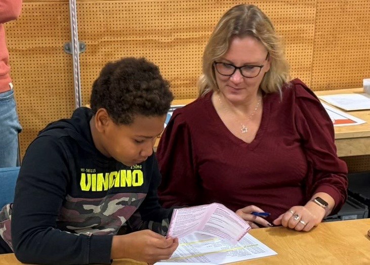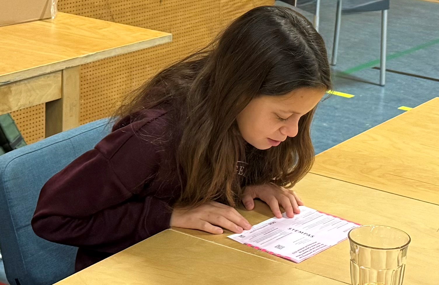 Een aantal leerlingen mocht de leden van het stembureau een handje helpen. Onder toeziend oog van de volwassen stembureauleden kregen zij een belangrijke taak: het controleren van de identiteitskaarten en stempasnummers. Vervolgens mochten zij de kiezers voorzien van het officiële stembiljet.