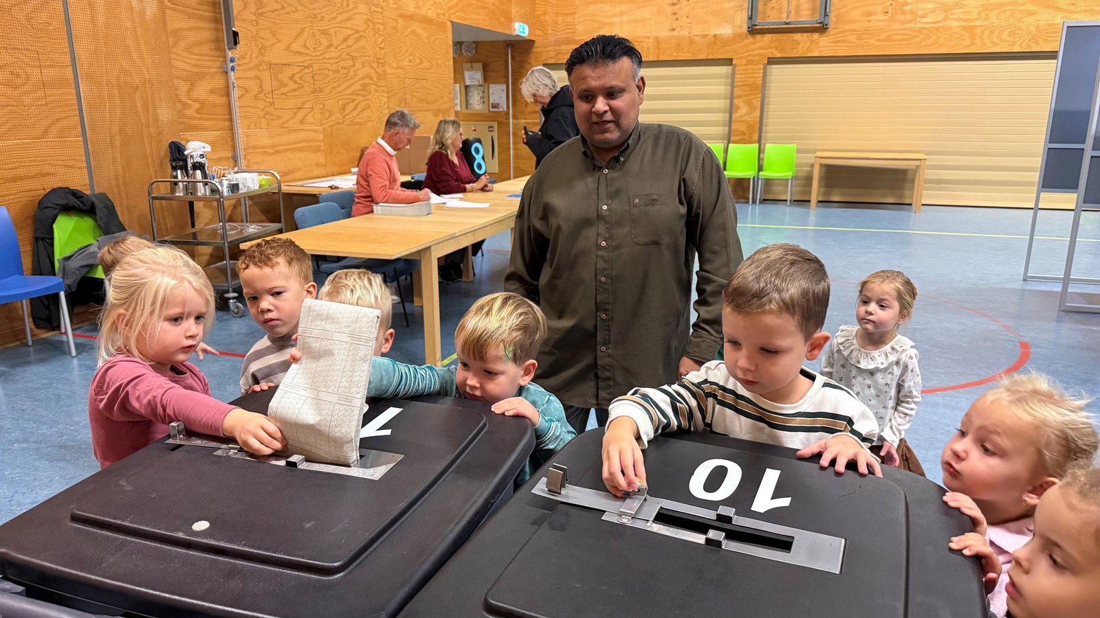 De leerlingen van Kindcentrum De Windwijzer brachten een leerzaam bezoek aan het stembureau dat is ingericht in de gymzaal.
