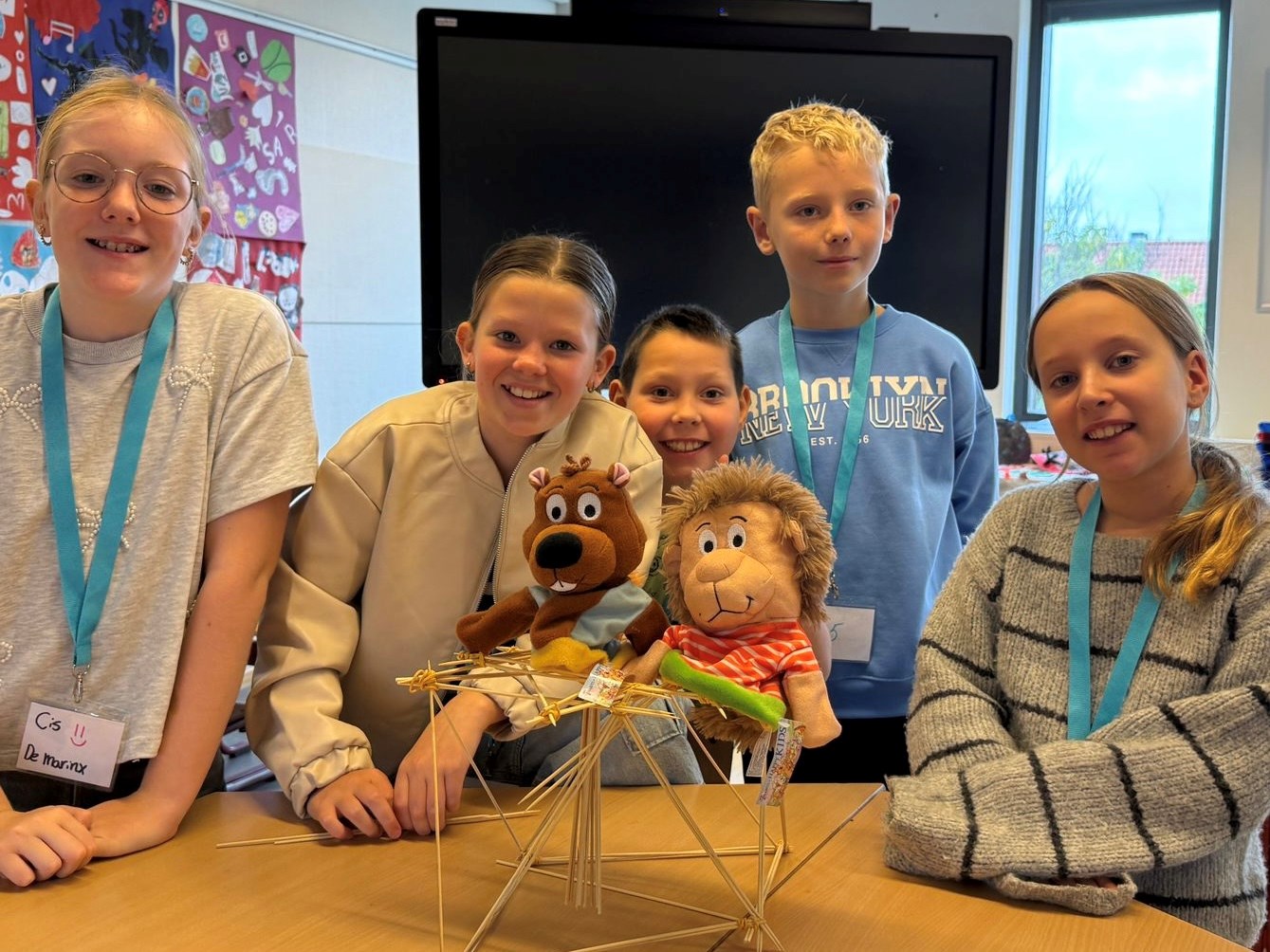 We hebben ook nog samen torens gebouwd van stokjes en elastiekjes. We moesten hierbij heel goed samenwerken. We sloten de dag af met een gezamenlijke lunch met een lunchpakketje.