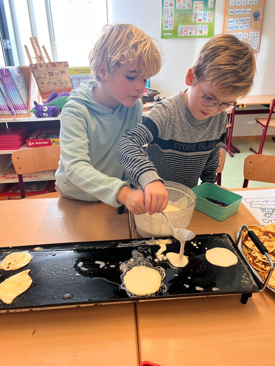 Gisteren hebben de onderbouw en middenbouw samen een gezellige middag gehad met koken en bakken, passend bij de thema’s de wereldkeuken en het restaurant.