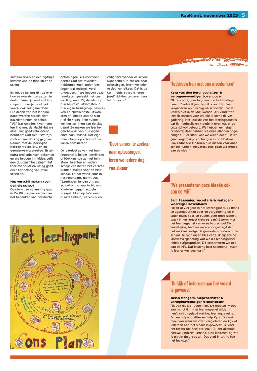 Het leerlingpanel staat met een artikel in de Kop Krant, een blad voor onderwijsprofessionals in de kop van Noord-Holland. Het artikel gaat over de leerlingpaneldag en hoe we op school de stem van de leerling benutten.