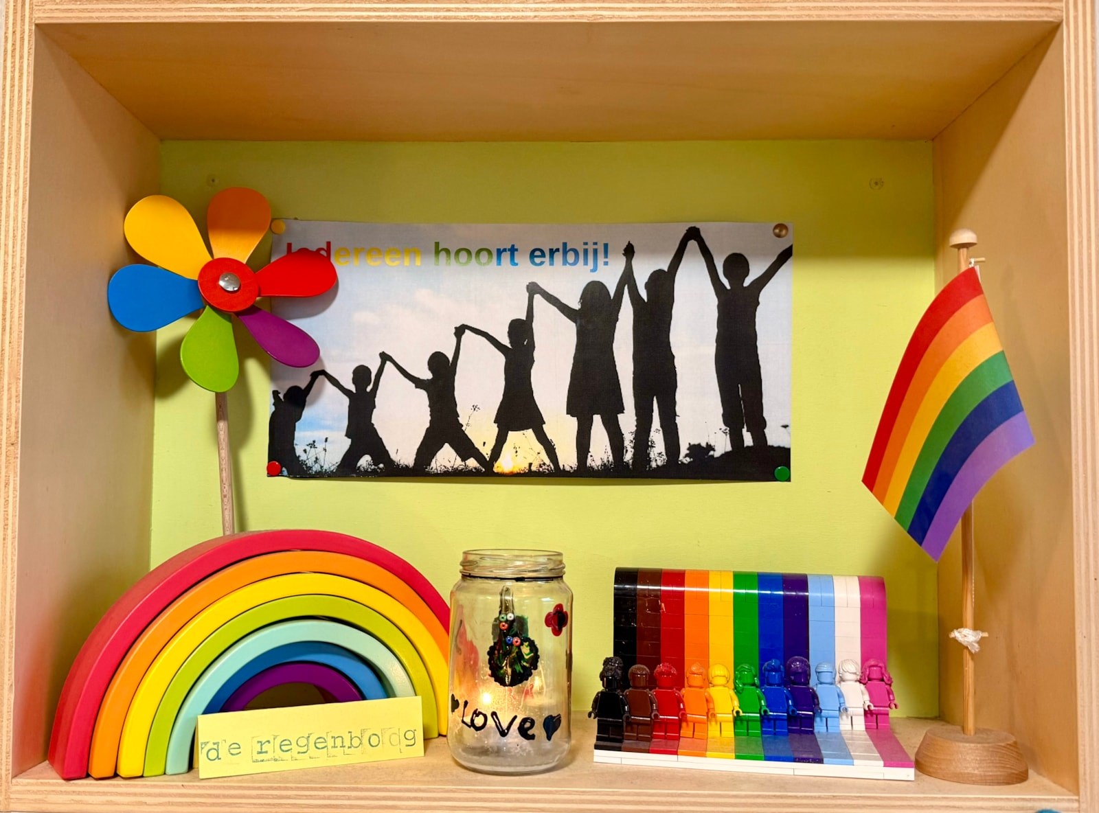 Dit sluit goed aan bij de betekenis van paarse vrijdag op 12 december. Net als de paarse kleur van de Advent, staat paars op deze dag voor de gelijkwaardigheid van iedereen op school. We zijn allemaal verschillend, maar iedereen hoort erbij! Dit laten we zien door op paarse vrijdag de regenboogvlag uit te hangen als symbool dat we niemand uitsluiten.