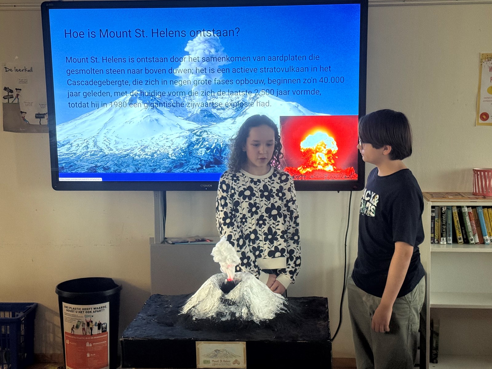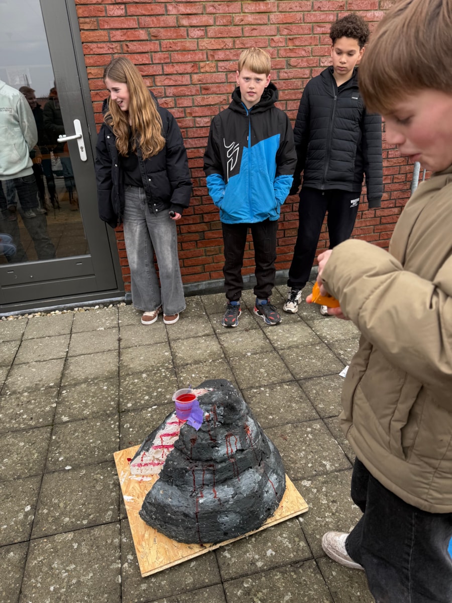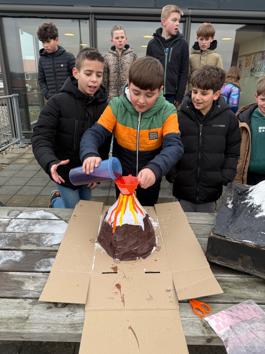 De afgelopen weken hebben de leerlingen van groep 8 hard gewerkt aan het project De Vulkaan. Ieder groepje kreeg een eigen vulkaan toegewezen. Over deze vulkaan hebben zij veel informatie opgezocht, zodat zij de andere leerlingen konden bijpraten over wat zij hadden gevonden en geleerd. Alle leerlingen hebben een goede presentatie gegeven over hun vulkaan, waar we met z’n allen veel van hebben geleerd.