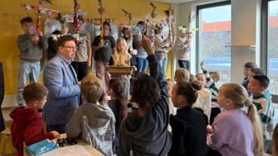 De leerlingen hadden bij de BSO een cake gebakken als welkom. Ze hebben de gasten…